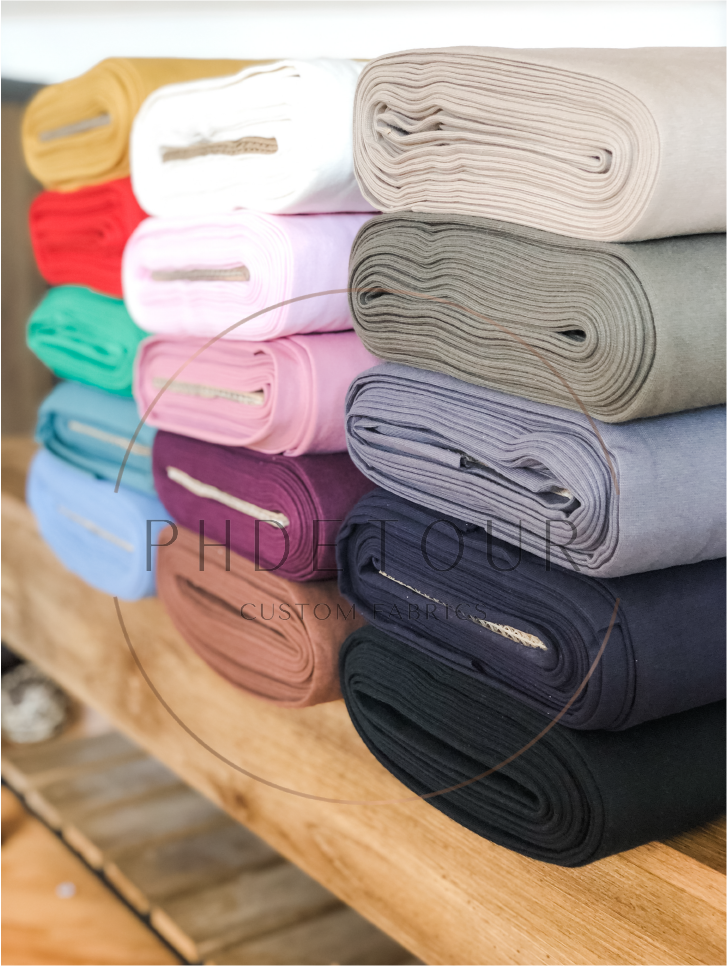 We'll match the perfect shade of Euro ribbing to your custom printed fabric for you -- no more guess work!